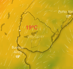 En la tarde los Vientos Sector N 28 Km/h, ráfagas que pueden superar los 60 Km/h en el Litoral W, S,y E, en el resto del País Ráfagas pueden alcanzar y superar los 40 Km/h.