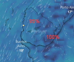 Fin de Semana a partir de la tarde del Sábado 23, comienzan las precipitaciones, acompañadas de algunas tormentas en el Litoral W.