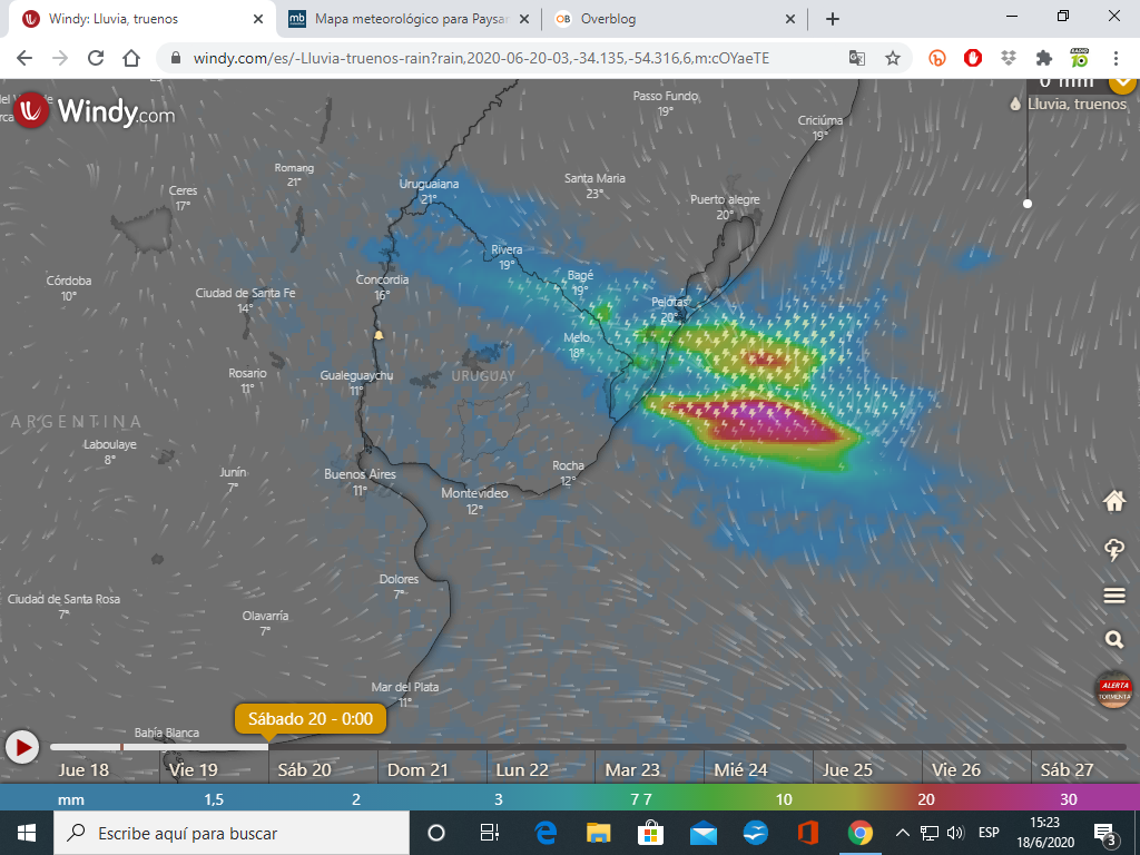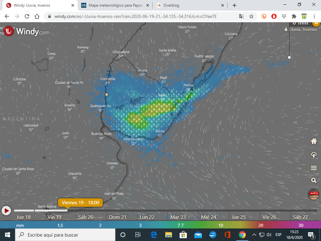 Tormentas y precipitaciones( Windy)